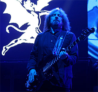 links Geezer Butler, welcher noch immer eindrücklich energisch die