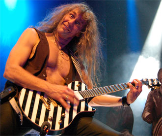 breitbeinig auf der Bühne, solierte halbliegend bei «Heavy Metal