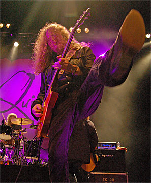 sich die beiden Gitarristen Guy Griffin und Paul Guerin vorne am