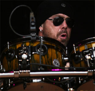 während ihr Kollege und Drummer Frank Beard hinter ihnen an einem
