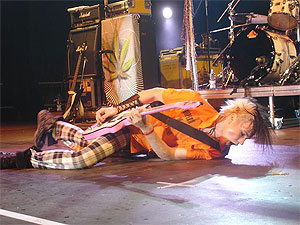 gehüllter Gitarrist mit Slash-Frisur oder die pinkigen Hosen, Tücher